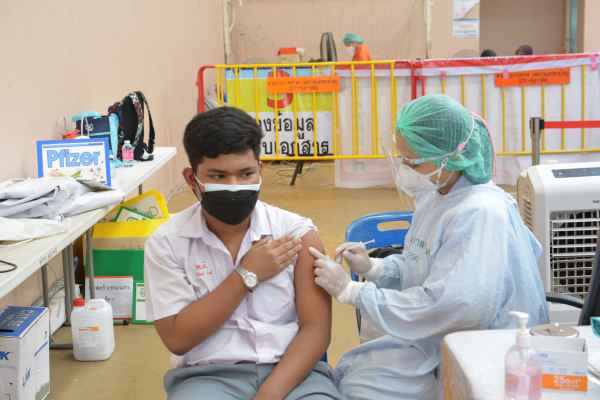 นักเรียนระดับมัธยมศึกษาตอนปลาย เข้ารับการฉีดวัคซีนโควิด19 เข็ม 1