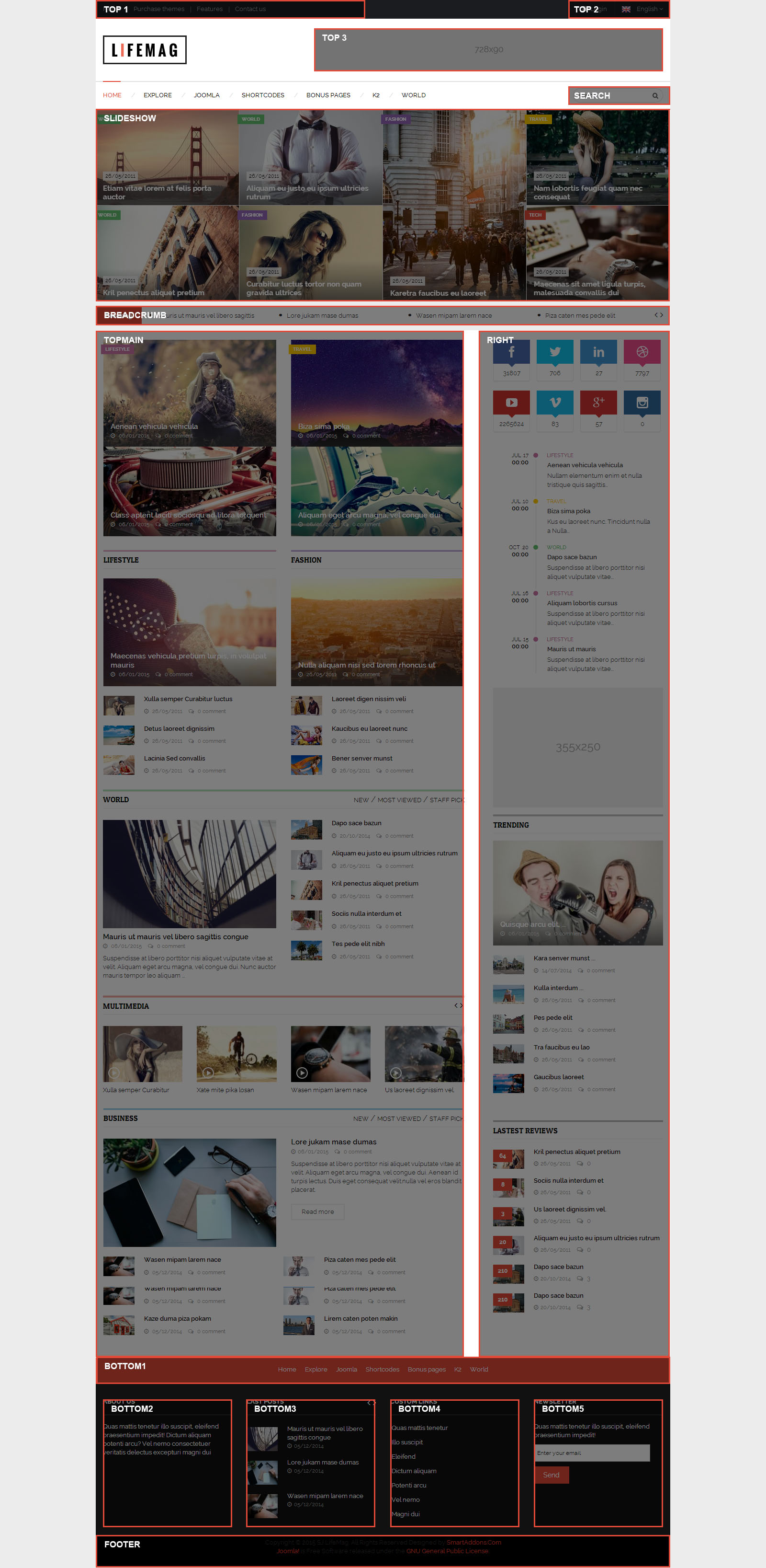 This Joomla! template supports a wide variety of module positions which can be archived automatically by the system.The module positions are fully collapsible mean that if there are no modules published in particular position, this module position will disappear and the other modules with take this place. Also you can have 2-Columns layout (content, left or right)