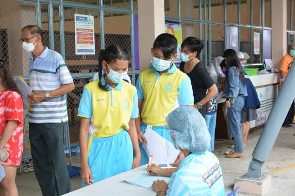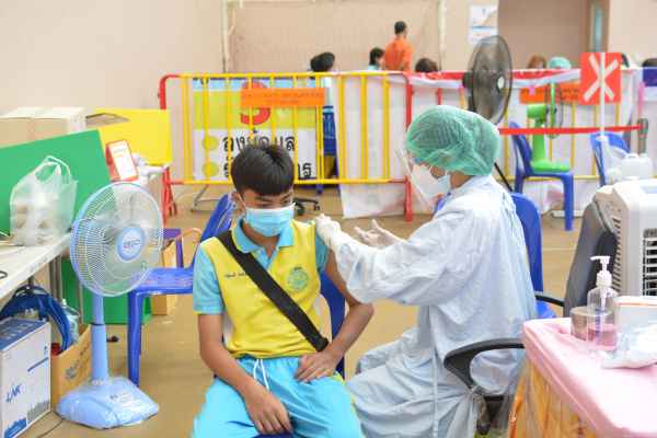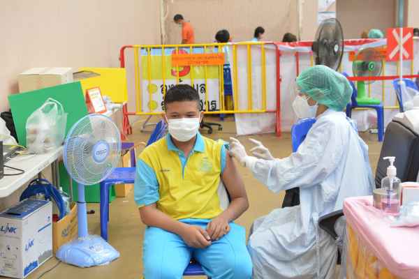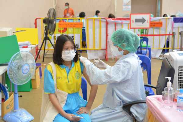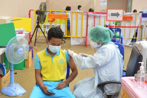 นักเรียนระดับมัธยมศึกษาชั้นปีที่1 เข้ารับการฉีดวัคซีนโควิด19 เข็ม 1