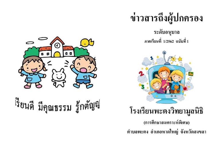 ข่าวสารถึงผู้ปกครองระดับอนุบาล ปีการศึกษา 1/2562 ฉบับที่ 1