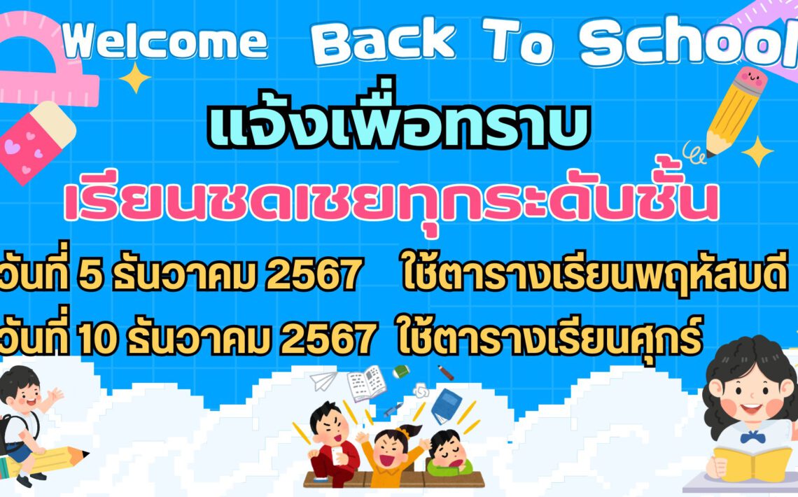 แจ้งเพื่อทราบ เรียนชดเชยทุกระดับชั้น วันที่ 5 ธันวาคม 2567 ใช้ตารางเรียนพฤหัสบดี วันที่ 10 ธันวาคม 2567 ใช้ตารางเรียนศุกร์