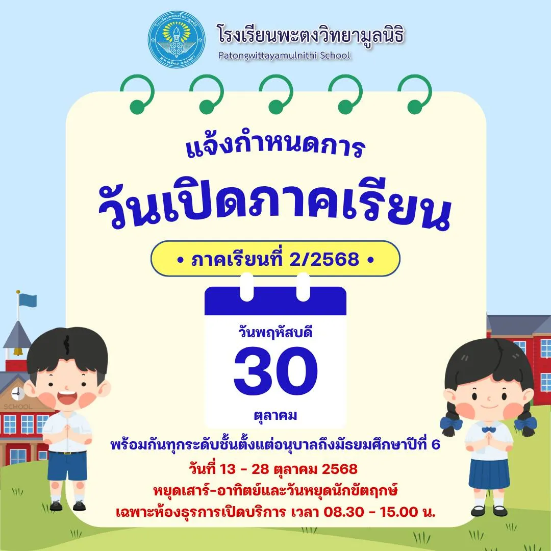 กำหนดการเปิดภาคเรียนที่ 2/2568
